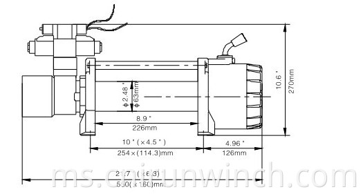9000 lbs Hidraulik Winch Item No. HWX9000U Injap elektrik dipasang pada motor dengan ciri-ciri cemerlang berikut.